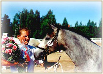 Supreme Champion at the Breed Show 1994. So far she has bred two foals and I hope she will be as good brood mare as her dam was.
