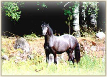 has been very succesful in the show ring, being Junior Champion (all breeds) at the National Pony Show as a three year old. Later she got very high point score at the inspection. Her dam is Ametist 76 C (Kimble - Ad Astra). Scaramé is owned and bred by Rockfield Stud, Merja and Majgret Nurmi.