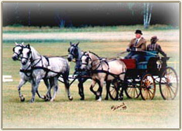 This four-in-hand team was selected to the FEI Driving World Championships 2002 where they will represent Sweden. The driver of this team is Ulf Mattsson who has bred and trained the ponies himself. All the ponies are by Fendth RC 55 so they are grandchildren of